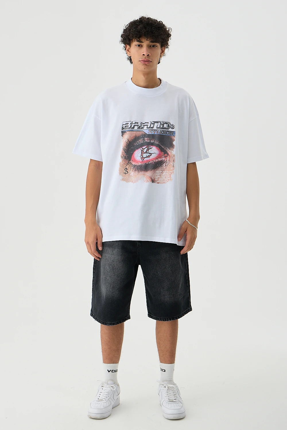 BRND Baskı Detaylı Beyaz Oversize Tişört