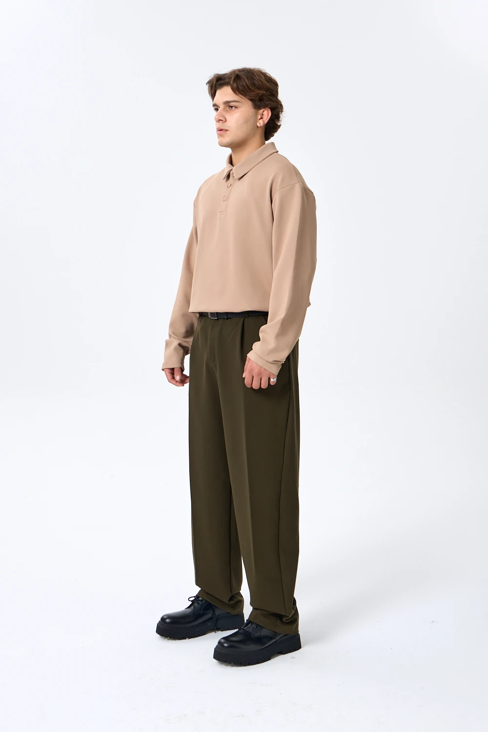 Polo Yaka Düğme Kapamalı Örme Oversize Sweatshirt